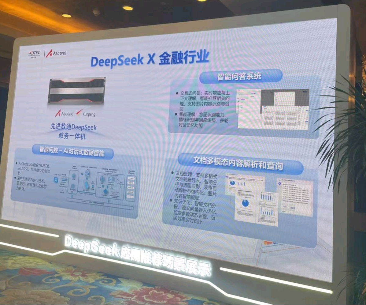 本次大会森林舞会官网展示了DeepSeek一体机,向业界全方位展示了其在金融科技领域的创新实力。森林舞会官网DeepSeek一体机的文档多模态内容解析和查询功能备受瞩目。它能够对各类金融文档,如研究报告、监管文件、交易记录等进行全方位解析,将文本、图表、图像等多模态信息转化为可高效查询和分析的结构化数据。金融组织借此可快速定位关键信息、洞察市场趋势、防范合规风险,为决策给予有力支持,实现从数据到价值的高效转化。